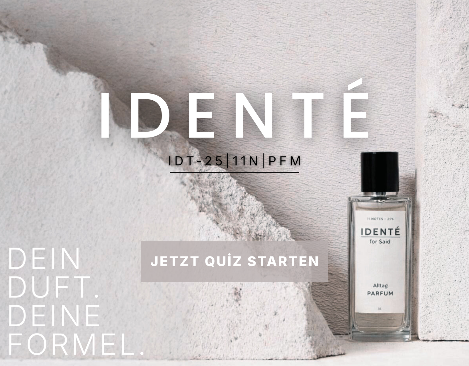 IDENTÉ revolutioniert die Parfümindustrie durch echte Personalisierung: Während herkömmliche Parfüms für die Masse produziert werden, wird dein IDENTÉ-Duft ausschließlich für dich kreiert – basierend auf deiner Persönlichkeit, deinen Vorlieben und deinem Lifestyle. Unsere KI-gestützte Duftanalyse berücksichtigt über 20 hochwertige Duftnoten und erstellt eine Formel, die zu 94% zu deiner Persönlichkeit passt. Jedes Parfüm wird on-demand in unserem Labor in Deutschland hergestellt, ist 100% vegan und cruelty-free. Das Ergebnis: Ein Signature Scent, den nur du trägst – kein anderer Mensch weltweit hat denselben Duft. Das ist echter Luxus: absolute Individualität statt Massenproduktion.